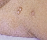 水いぼは伝染性軟属腫ともいい、小さなお子さんにできる水いぼウイルスの感染症です。水いぼを引っ掻くと周囲に飛び散り感染するだけでなく、他のお子さん・とくに湿疹やアトピーなどで肌が弱い方に移りやすいのが問題です。基本的に自然治癒しますが、時間が半年~1年と長く、掻き壊すと際限なく広がったり、化膿して膿むこともあります。