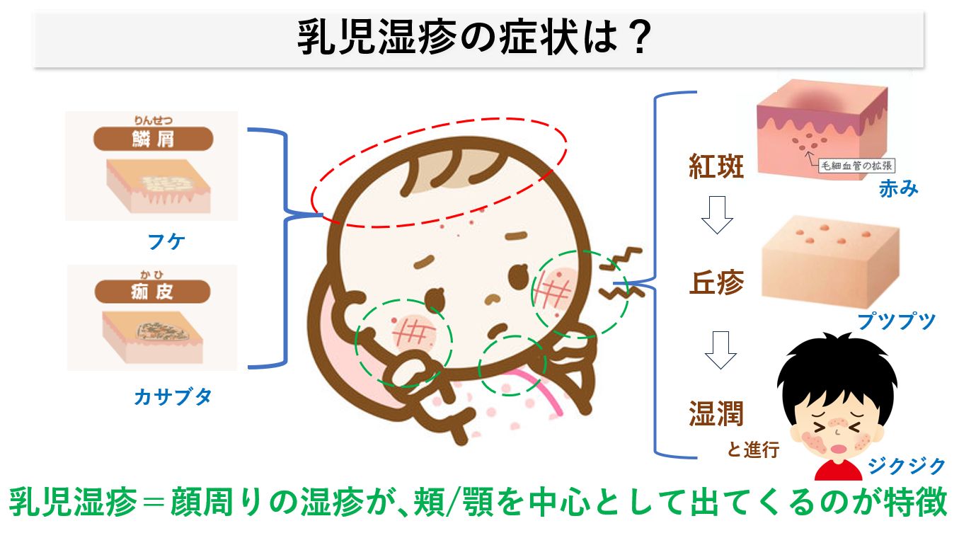 前者2つは原因・対処法が違ってくるので「乳児湿疹」とは別疾患と考えて治療する必要があります(後述)。